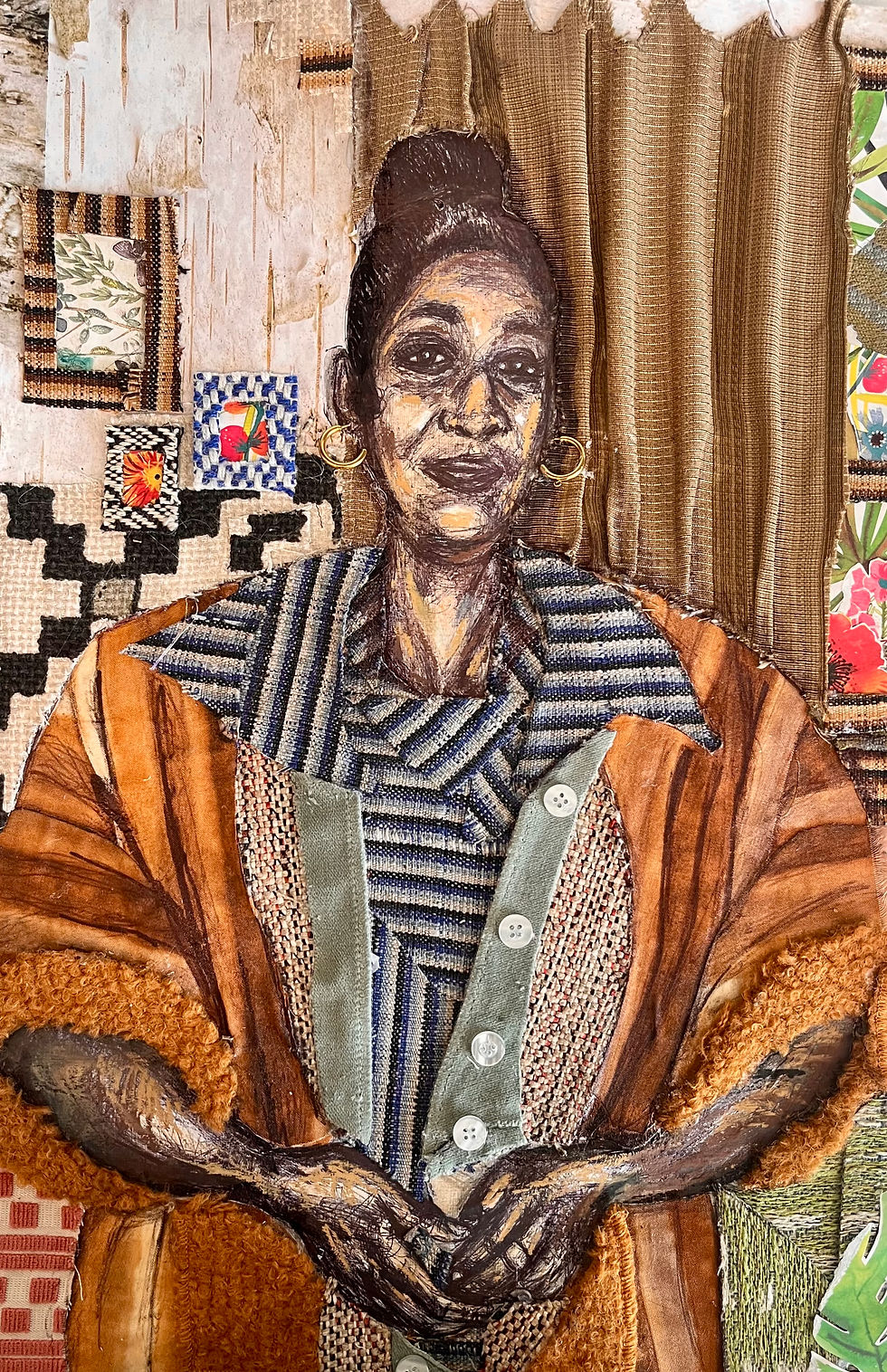 While Shaunie’s earlier mixed media portraits celebrated the energy of diverse human experiences, her current work explores deeper narratives—resilience, love, and the intergenerational bonds that define identity. Engaging in intimate conversations with family members revealed the interconnectedness of their stories, and now each piece serves as a tribute to those who have influenced her healing and growth.